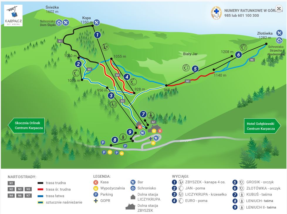 This is a complex of lifts (chair lift, T-bar lifts, ribbons), from which you can reach Kopa by chairlift.